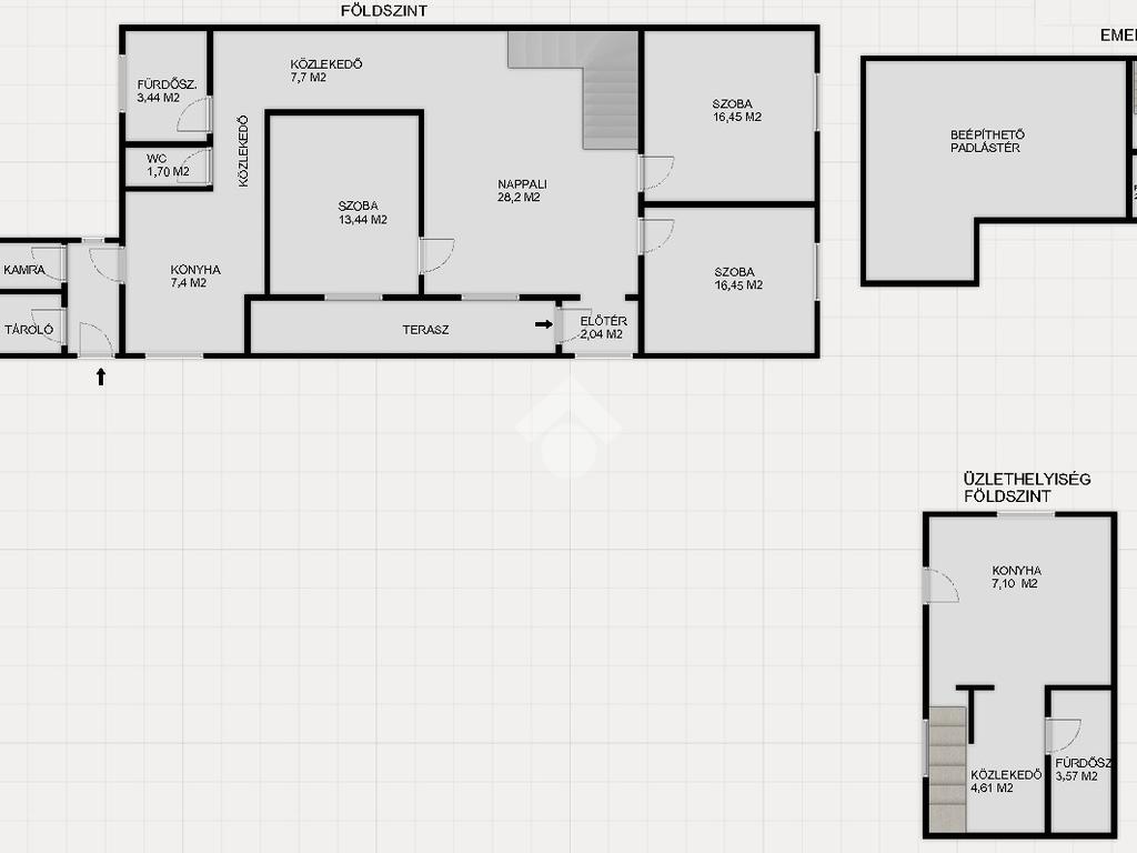 Az üzlethelyiség 41 m2, belső 2 szintes, 1 szobás, jelenleg lakásként funkcionál, de szeparálható így akár irodaként, üzletként is működhet.