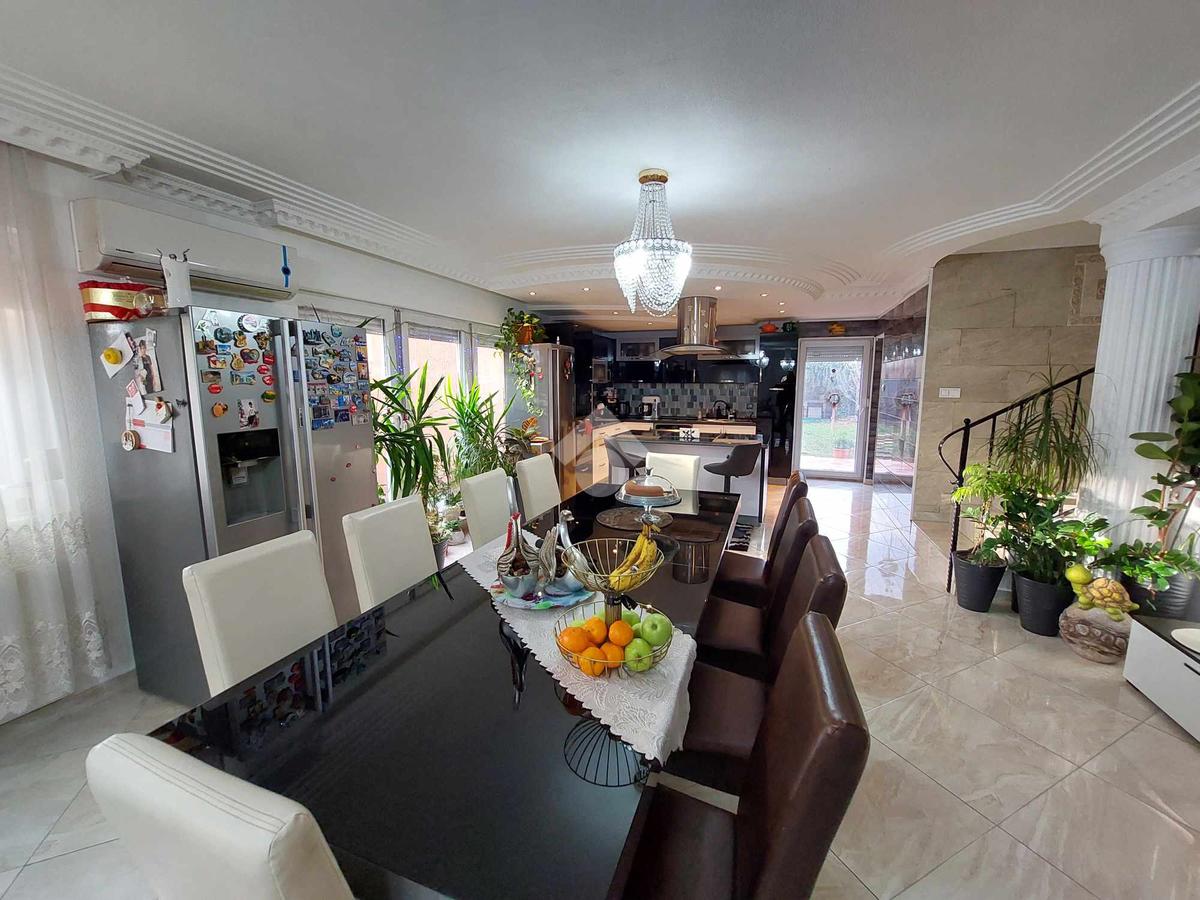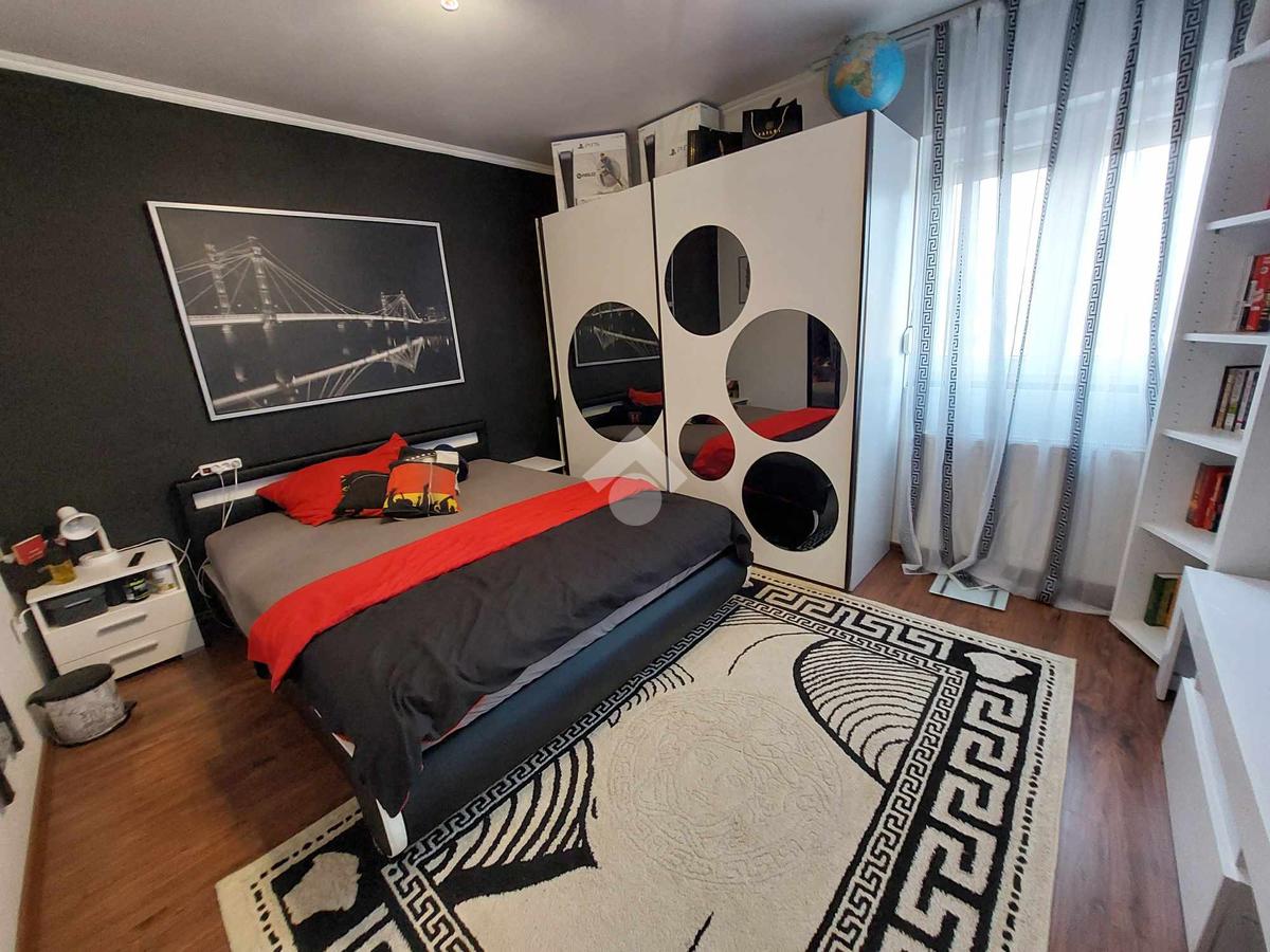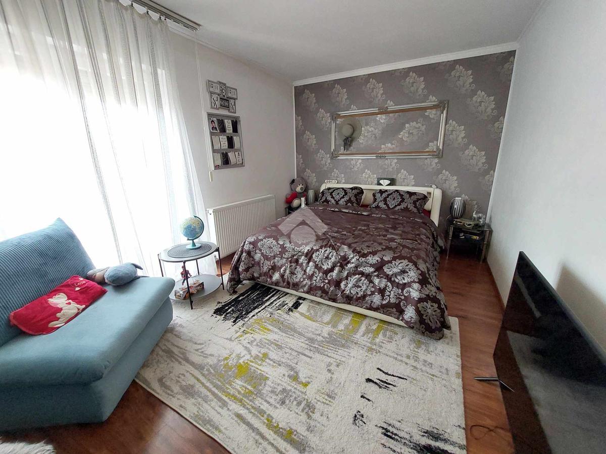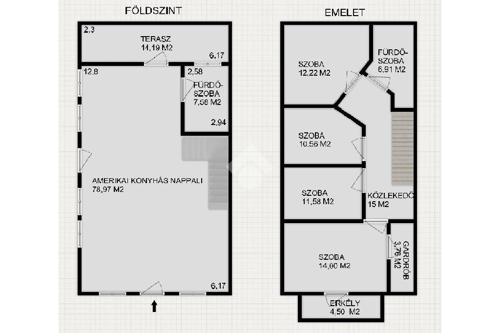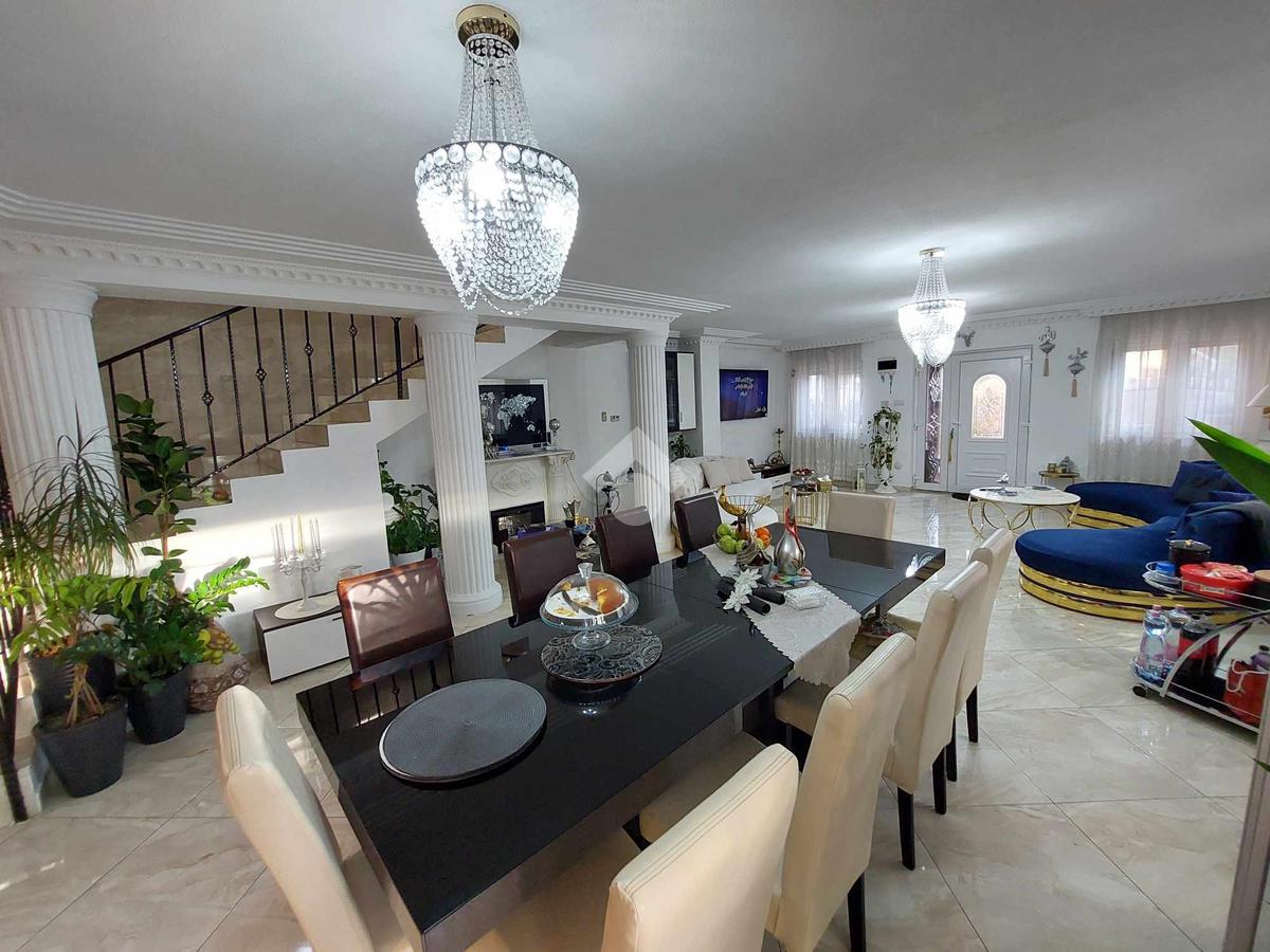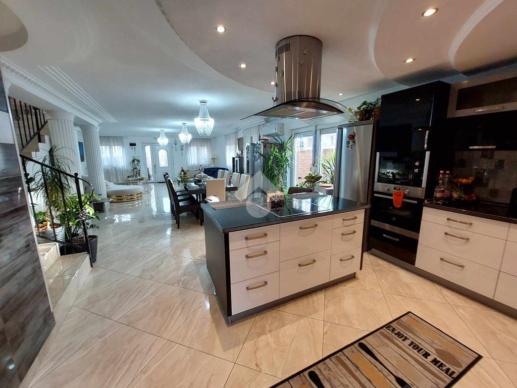 Az ingatlan belső 2 szintes, a földszinten egy hatalmas amerikai konyhás nappali és fürdőszoba található, az emeleten 4 szoba (egyik szoba gardróbbal is rendelkezik), fürdőszoba, közlekedő és erkély került kialakításra. A szobák laminált parkettásak, a többi helyiség járólapos.