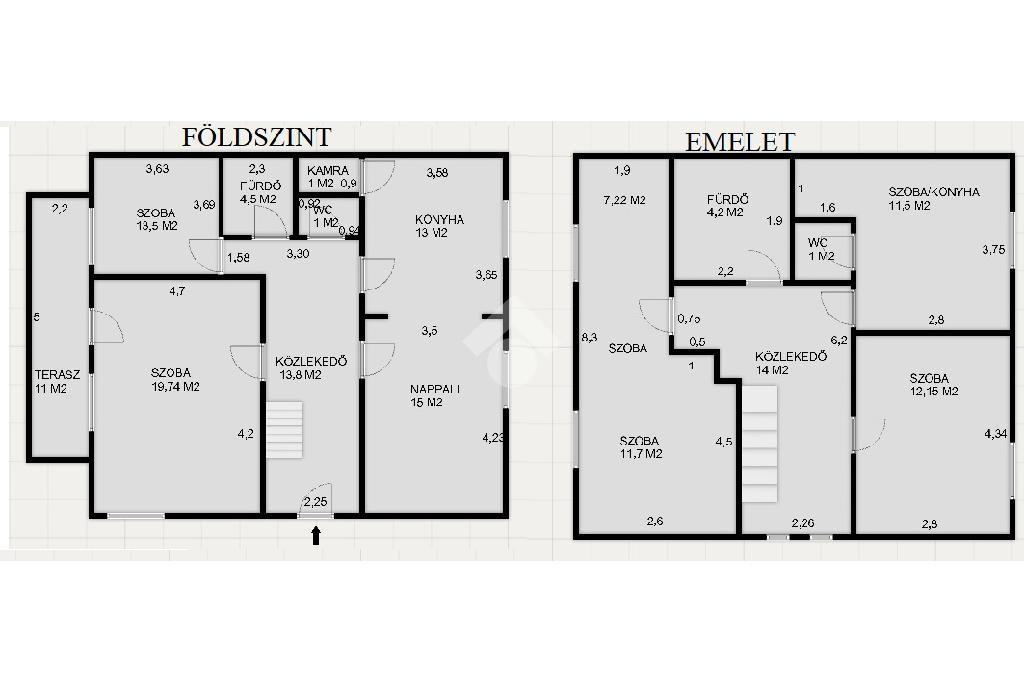 A földszinti részen előszoba, tágas nappali, étkezős konyha, 2 szoba, fürdőszoba, mellékhelyiség és terasz található, illetve egy kamra. Az emeleten közlekedő, 3 szoba (egyik konyhává alakítható), fürdőszoba és külön mellékhelyiség került kialakításra. A nyílászárók műanyagok hőszigeteltek, redőnnyel vannak ellátva. A belső ajtók, illetve a teljes villanyvezeték kicserélésre került. A fűtést gáz cirkó kazán biztosítja, a nappaliban egy hűtő-fűtő klíma is fel lett szerelve. A házon kb. 5 cm-es szigetelés található. A tető szerkezete LINDAB lemeztető és cserepes.