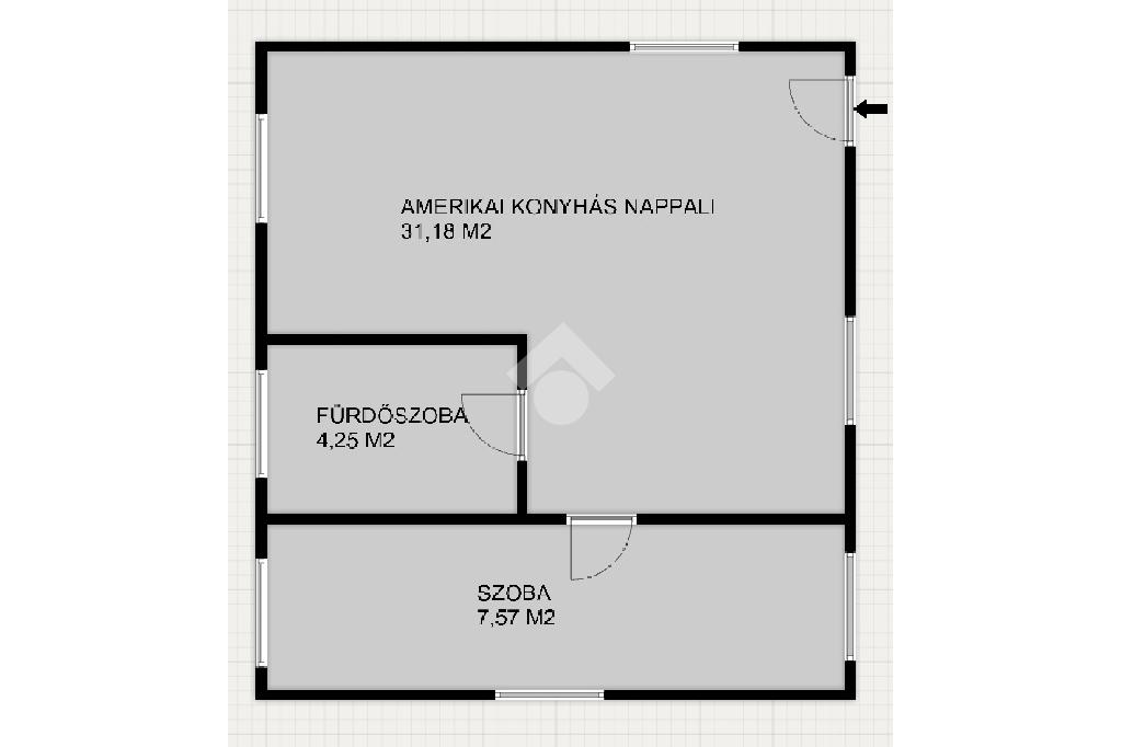 A lakásban tágas étkezős amerikai konyhás nappali, 1 szoba, fürdőszoba kerül kialakításra.