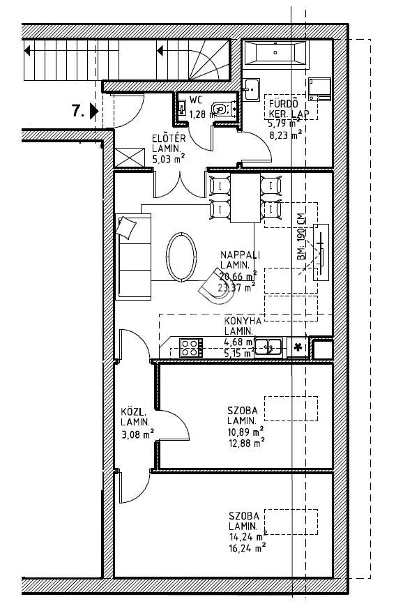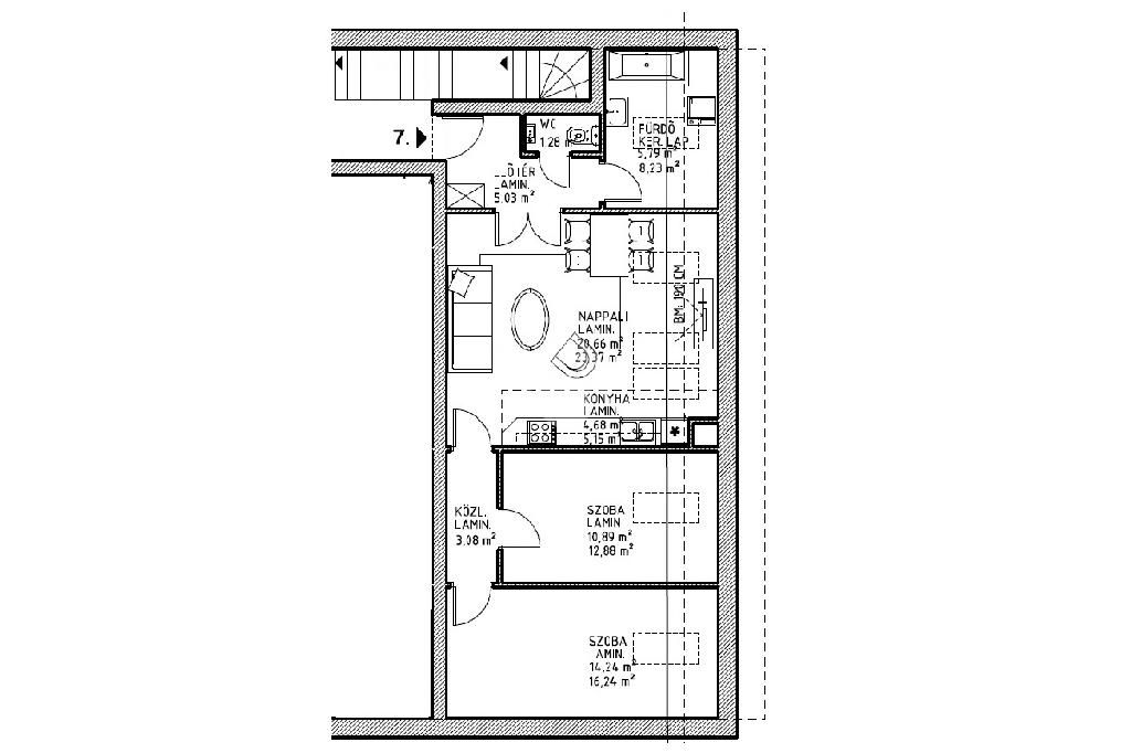 A lakás várható átadási határideje 2027. A társasház 7 lakásos lesz, 3 szintes, 30-as porotherm téglából épül, amelyet egy 10 cm-es grafitos szigeteléssel is ellátnak majd.