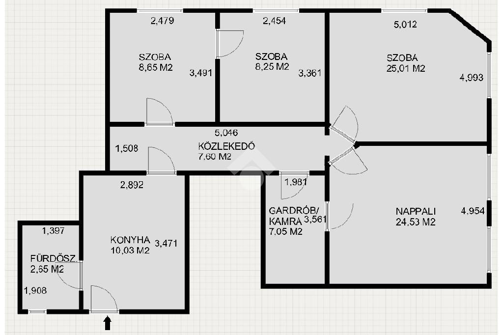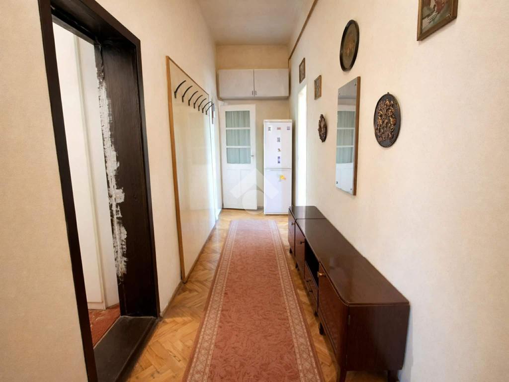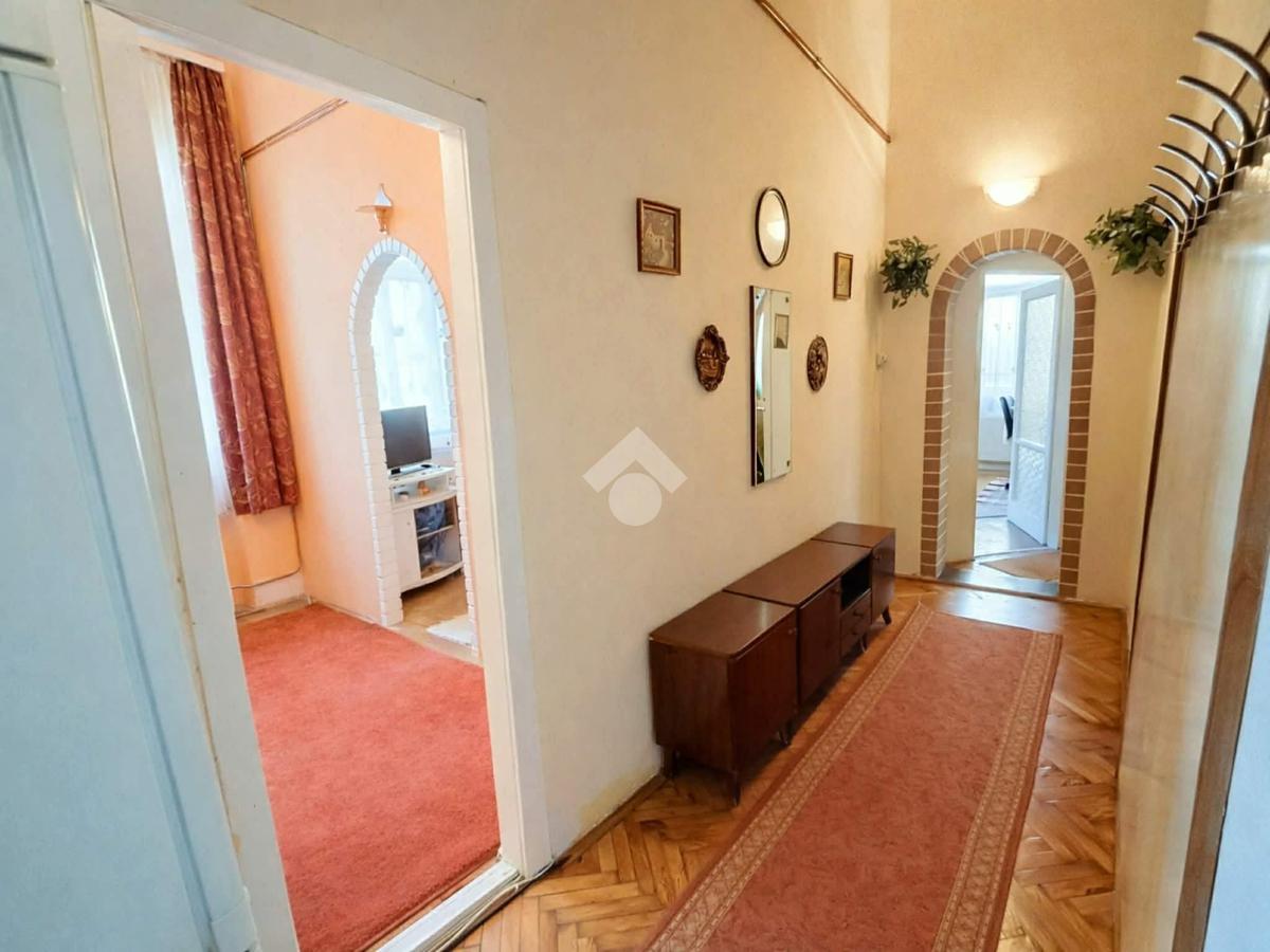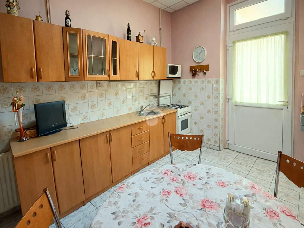 A lakásban konyha, 2 + 2 félszoba, étkezős konyha, fürdőszoba, közlekedő és gardróbszoba található. A víz- és a villanyhálózat felújítandó, esztétikailag közepes állapotú. A nyílászárók részben cserélve lettek műanyag hő- és hangszigetelt ablakokra és bejárati ajtóra. A konyhában és a fürdőszobában hidegburkolatok, a szobákban faparketta található. A fűtésről gázcirkó gondoskodik és lapradiátorok adják le a hőt. A konyhabútor a vételár részét, a többi berendezés megegyezés tárgyát képezi.