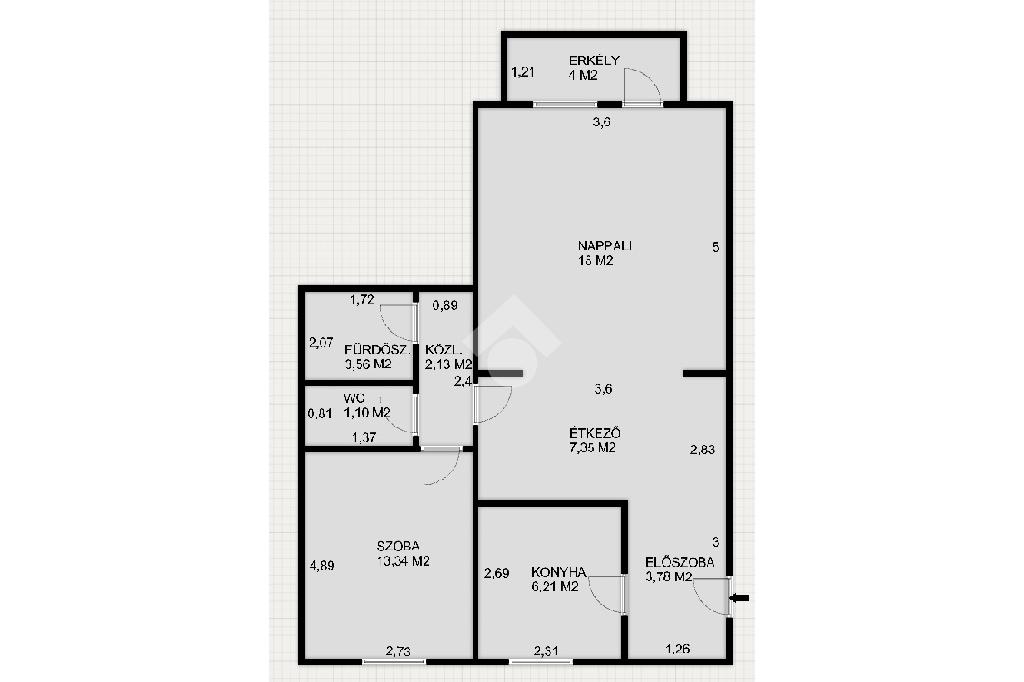 Tágas nappali, külön étkező, konyha, szoba, fürdőszoba és mellékhelyiség áll rendelkezésre. Igény esetén könnyen amerikai konyhás nappali és 2 szobássá alakítható. A nyílászárók fakeretes hőszigetelt ablakok. A fűtést és a meleg vizet házközponti rendszer biztosítja, ezek díját a közös költség tartalmazza.