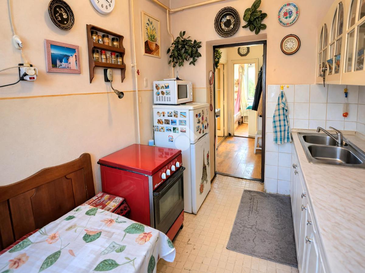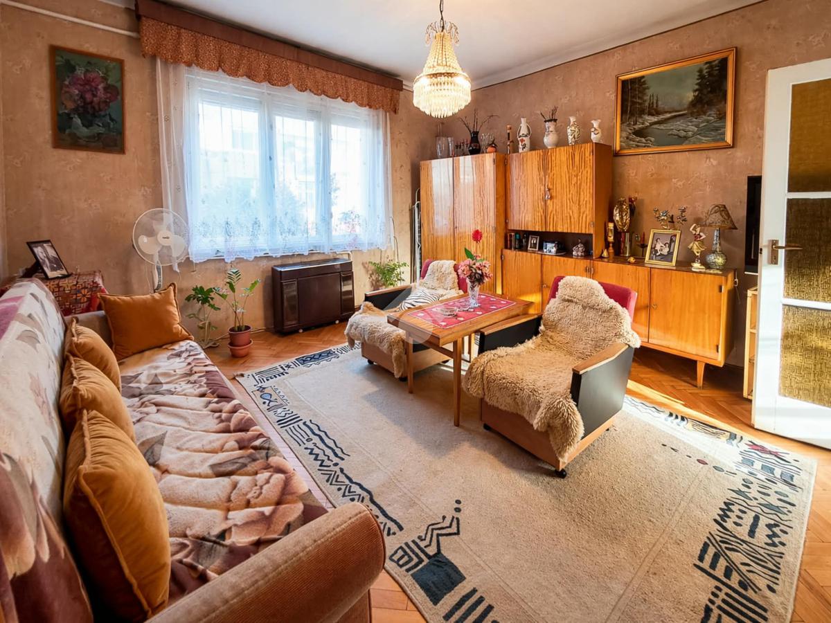 Tágas nappali, hálószoba, konyha, előszoba, fürdőszoba és kamra áll rendelkezésre. A lakás közepes állapotú, beköltözhető. A fűtést gázkonvektor biztosítja. Tartozik hozzá egy 3 m2-es belső udvarra néző erkély, egy 4 m2-es tároló a pincében és egy zárt udvari autóbeálló.