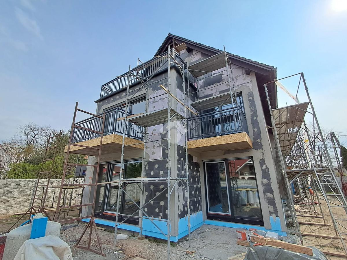 A társasház 4 lakásos lesz, 2 szintes, téglaépítésű, betonfödémes, 10 cm-es grafitos külső szigeteléssel is ellátnak majd.